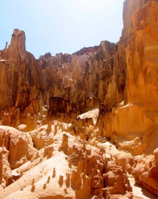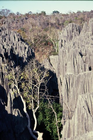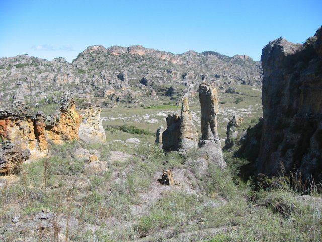 -Particularités géologiques étonnantes : exemple du Massif Ruiniforme de grès de l’Isalo, du relief karstique ultra découpé des Tsingy. une forêt de bois fossilisés en affleurement …