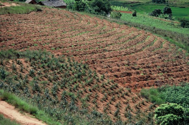-Aux problèmes de déforestation liés aux pratiques culturales des populations villageoises s’ajoutent ceux de l’érosion par le climat tropical sur des sols souvent fragiles.